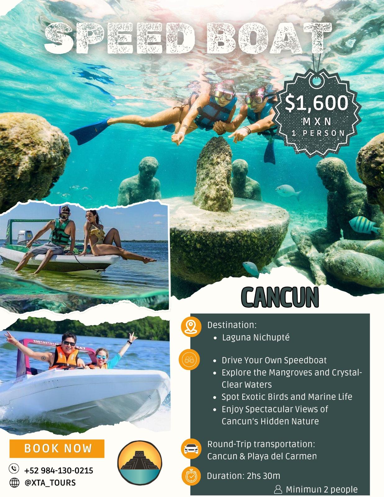 Get ready for one of Cancun’s most exciting and interactive experiences as you take control of your own speedboat and explore the stunning waters of Laguna Nichupté.
